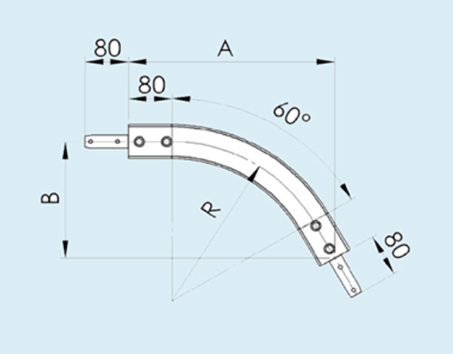 HFL63-VB-5R300 là khung cong đứng dùng trong hệ thống băng tải HFL63, giúp băng tải chuyển hướng theo phương thẳng đứng trong các bố trí băng tải có không gian hạn chế. Cấu trúc kim loại chắc chắn giúp dẫn hướng xích ổn định và đảm bảo vận chuyển sản phẩm mượt mà trong quá trình thay đổi độ cao của băng tải.