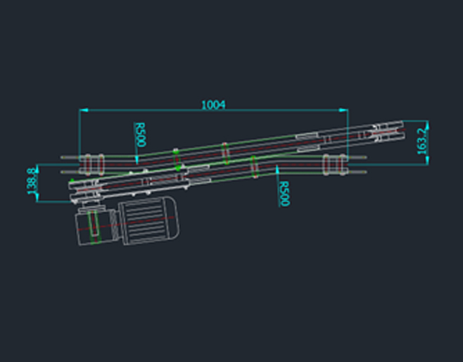 Bộ chuyển hướng được thiết kế cho khung băng tải cong, giúp sản phẩm di chuyển êm ái qua các đoạn cong của hệ thống băng tải. Động cơ truyền động được lắp ở phía bên trái của khung nhằm tối ưu không gian và thuận tiện cho việc lắp đặt.