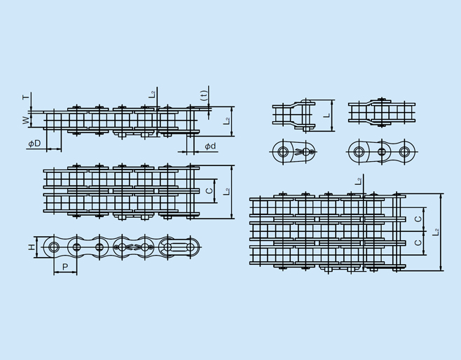 Link Plate: Thickness T:1.3 (1.0) Height H: 8.1